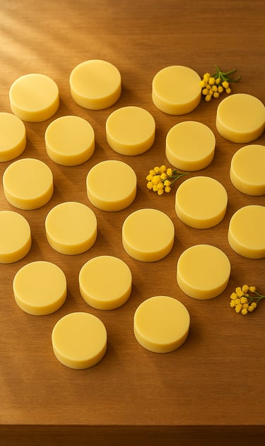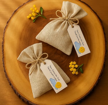 To match the sunny theme, we handcrafted mini cold process soaps using creamy goat milk and a high content of olive oil for gentle, nourishing care. Each bar was scented with a light, uplifting fragrance and wrapped in delicate packaging to complement the event’s décor.